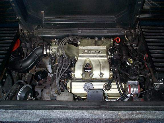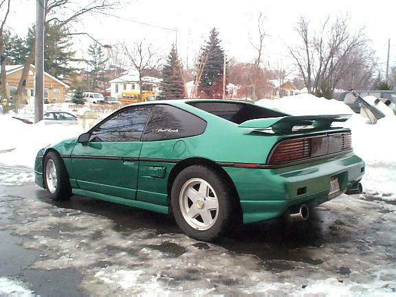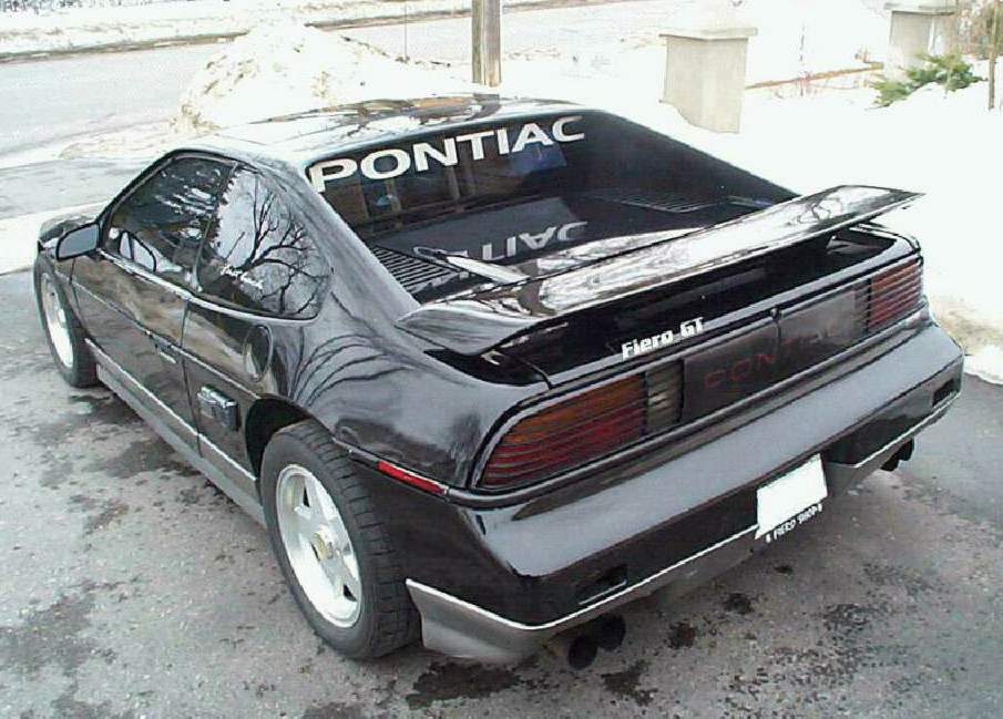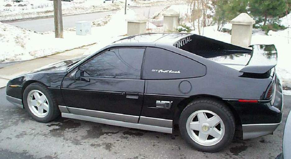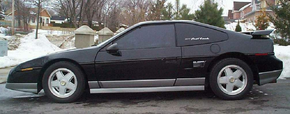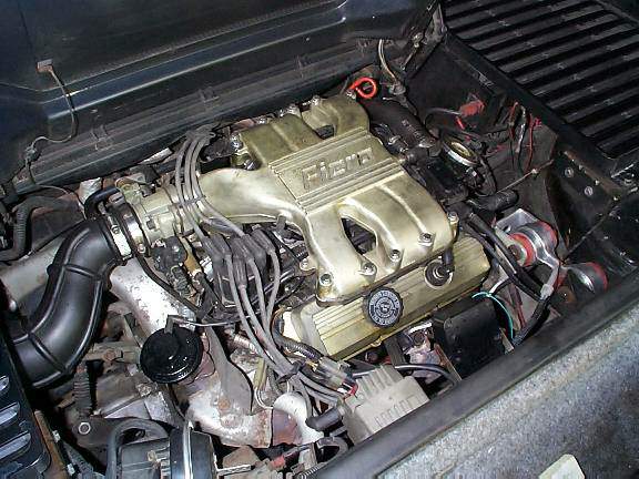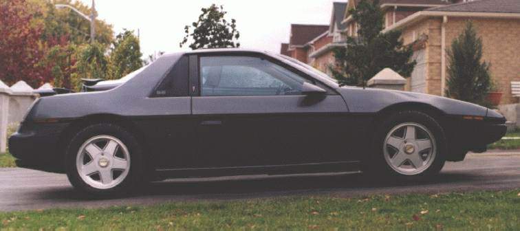 - 1985 Fiero SE, 2.8 litre V6, 4 speed standard (3.1/210hp goes in over the winter). This car is a lot of fun!!!! even though it is a pig at times to work on. Put in a sunroof. Replaced everything mechanical on the car that has to do with suspension including all ball joints, tie rods, bearings, replaced all brake rotors, pads and rebuilt brake callipers, lowered the car 2" with the spring kit, put in new gas premium shocks and struts, added rear anti-sway bar, put in an original stainless steel exhaust, plus a lot of little things. Car has 15" Ferrari style Ronal rims with 225R15-50 Yokahama tires. Designed and built the ILS-1 Digital Speedometer, Tachometer, Oil Pressure, Water Temperature and Voltage Gauges. Holley Fuel Injection, Acel Ignition System and I upgraded the ECM PROM. Stereo is a Pioneer DEH-55-DH with Pioneer 4"x10" co-axial fronts, Acoustic Research Mini rears plus a HiFonics 170 watt bridged subwoofer amp with an 8" ported Kenwood subwoofer. Radar Detector for United States use, is a Uniden 360 degree Laser/Microwave with a Mirage 2000 Jammer and I added a Uniden BearTracker BCT-12 Police and Emergency Scanner. Have replaced every interior and exterior part that was broken or even a bit worn. If you want any info on the subwoofer and it's location contact me here or through Vortex as I mounted the Sub under the right side dash (you can't even see it) and all the stereo shops said it couldn't be done.