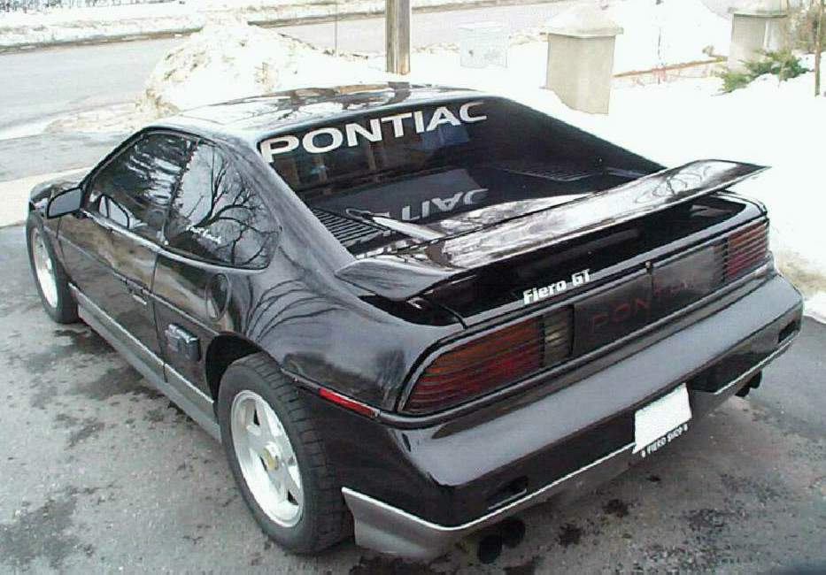 - 1987 Fiero GT, stock 2.8 litre V6, 5 speed standard. This car is a lot of fun like the 1985!!!! Came with a sunroof and power everything. Started the replacement procedure, but is a pain in the ass. Obviously all the good toys from the 1985 Fiero are going on this one...LOL. Anyway, these are two of the before pictures, so I can remember what it looked like.