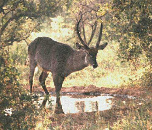 Waterbuck, getting a drink at the local road pool. These guys have strange markings on their posteriors, looks like they sat on a freshly painted toilet seat. Shot was taken early morning at Tshukudu. Shot with 400 ASA, 200mm/f4.