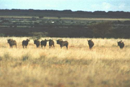 Blue Wildebeast, these guys are really hard to get close to. Shot with 600mm/f8 plus 2x converter to give 1200mm/f9, 400 ASA film, midday.