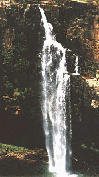 Berlin Falls near Graskop and Pilgrim's Rest in the Eastern Transvaal, South Africa, shot with 200 ASA, 80-200 mm @ about 100mm/f8. Don't let the picture size decieve you, this falls is about 300 feet high. In the upper left corner, there is a little blue dot, there are a couple of people there.