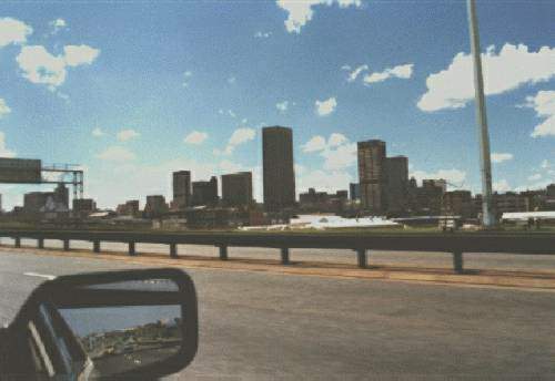 Johannesburg, afternoon, I think it was the R22 highway, anyway, the just north of the N13 and travelling west from the N1. The tallest building is the Carlton Centre. Shot with 400 ASA, 50mm/f11.